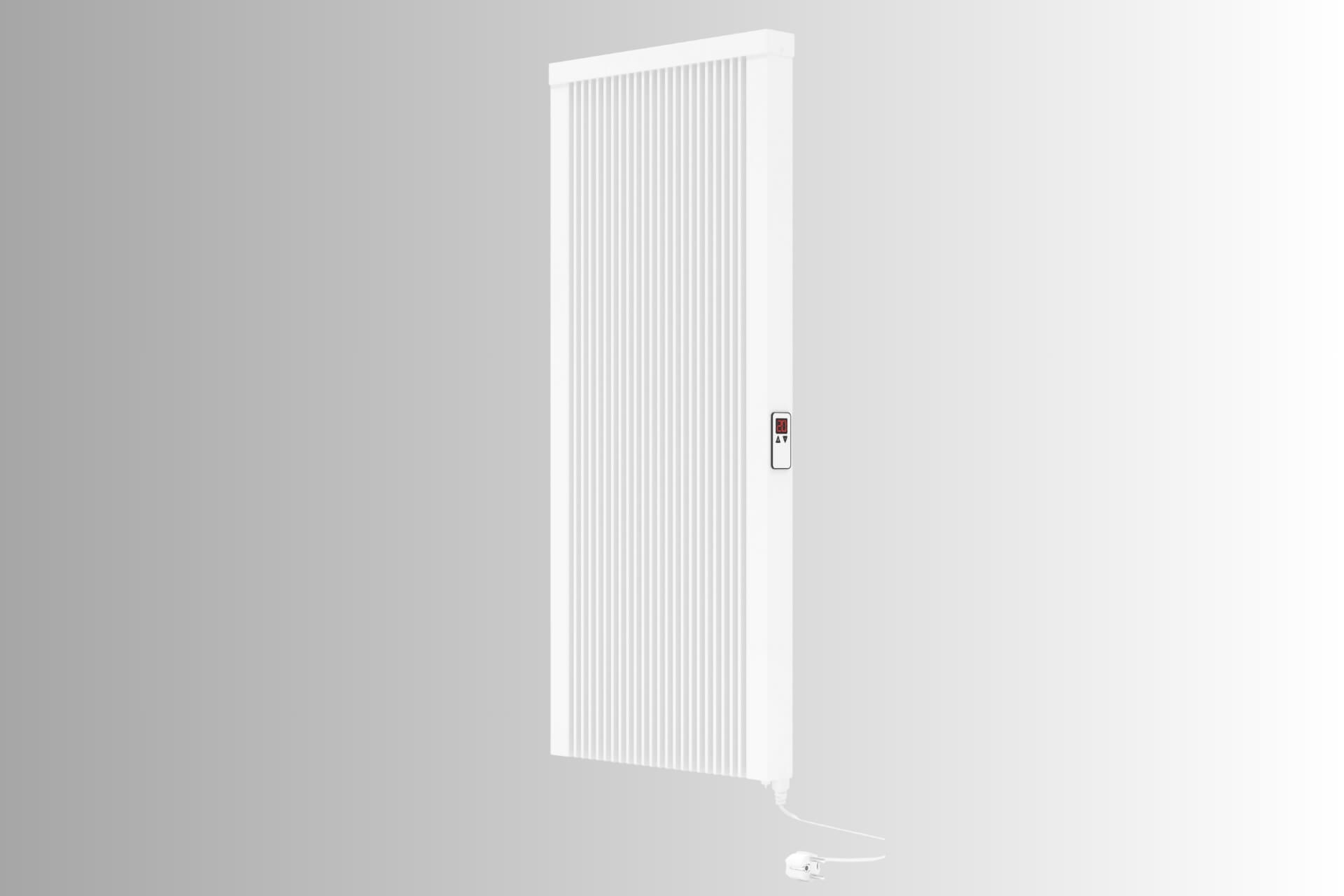 Die hohe eVARMO areo direct up Flächenspeicherheizung verbindet 40 % Strahlungs- mit 60 % Konvektionswärme für ein optimiertes Heizerlebnis und benötigt dabei nur etwa 15 Minuten Strom je Stunde. Ihr stilvolles Metall-Design in Weiß (RAL 9003) zeichnet sich durch eine sechsfach vergrößerte Oberfläche dank des Rippenmusters aus. Sie lässt sich bequem über das eingebaute 2-Knopf-Thermostat oder die zugehörige App steuern.