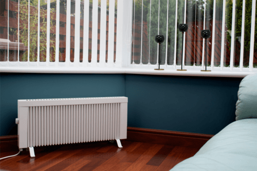 Diese mobile elektrische Heizung kombiniert die Eigenschaften und das Design eines Konvektors und einer Flächenspeicherheizung.